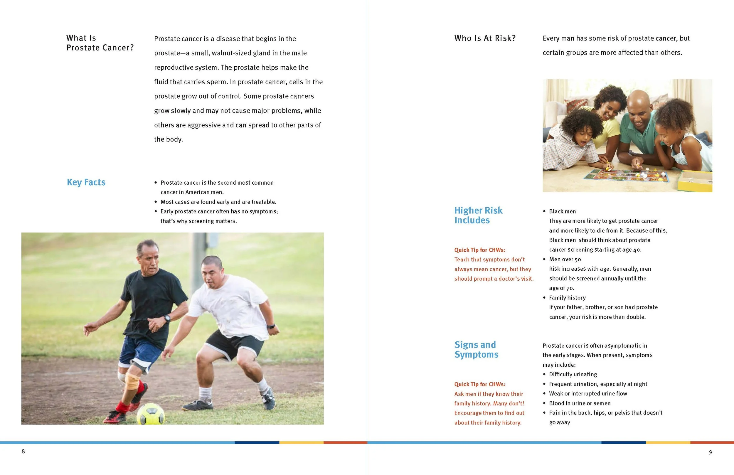 For the final design, our clients wanted something inclusive. They wanted imagery that showed a wide range of men of various ages and races, as well as a theme that could tie it all together and make the material they were presenting more comfortable. My team and I chose Game Night as our theme because games bring people together and make them more comfortable with each other.